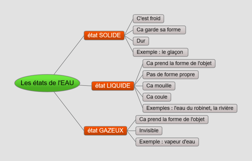L’après-midi, nous avons terminé l’exercice de mathématiques qui était commencé. Ensuite, nous sommes passés à la Découverte du Monde. Nous avons continué le travail sur l’eau et ses trois états (liquide, solide et gazeux). Nous avons réalisé une carte mentale.